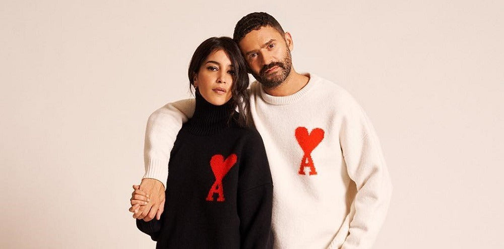 Ami Pull Marron Col Rond En Laine Camel Noir