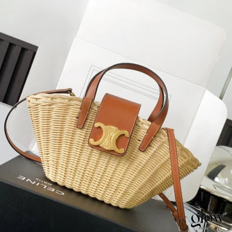 Ce mini panier "Teen Couffin" incarne l'esprit estival de CÉLINE avec son osier naturel tressé à la main et ses finitions en cuir de veau raffiné. Compact et élégant, il est parfait pour accompagner vos tenues légères avec une touche chic et authentique.