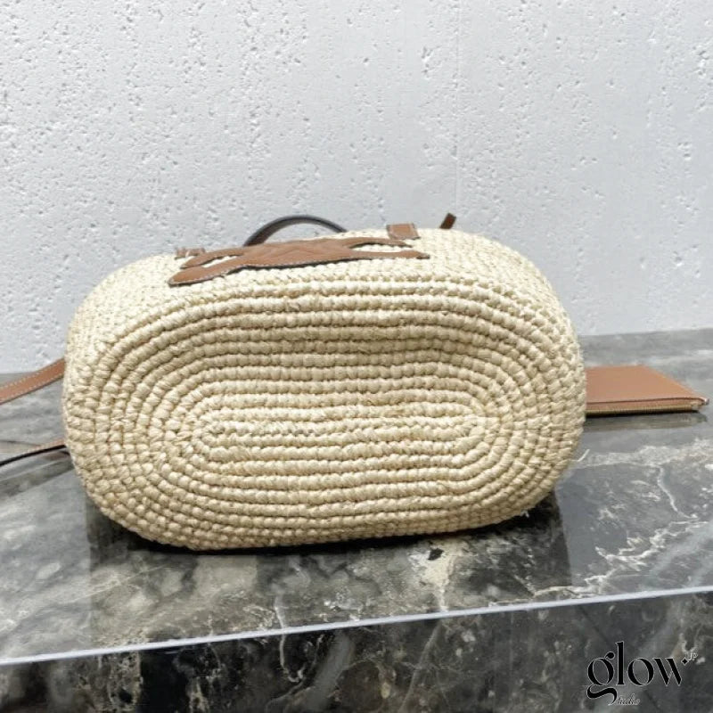 YSL - Sac porté épaule en raphia à finitions en cuir Manon Mini