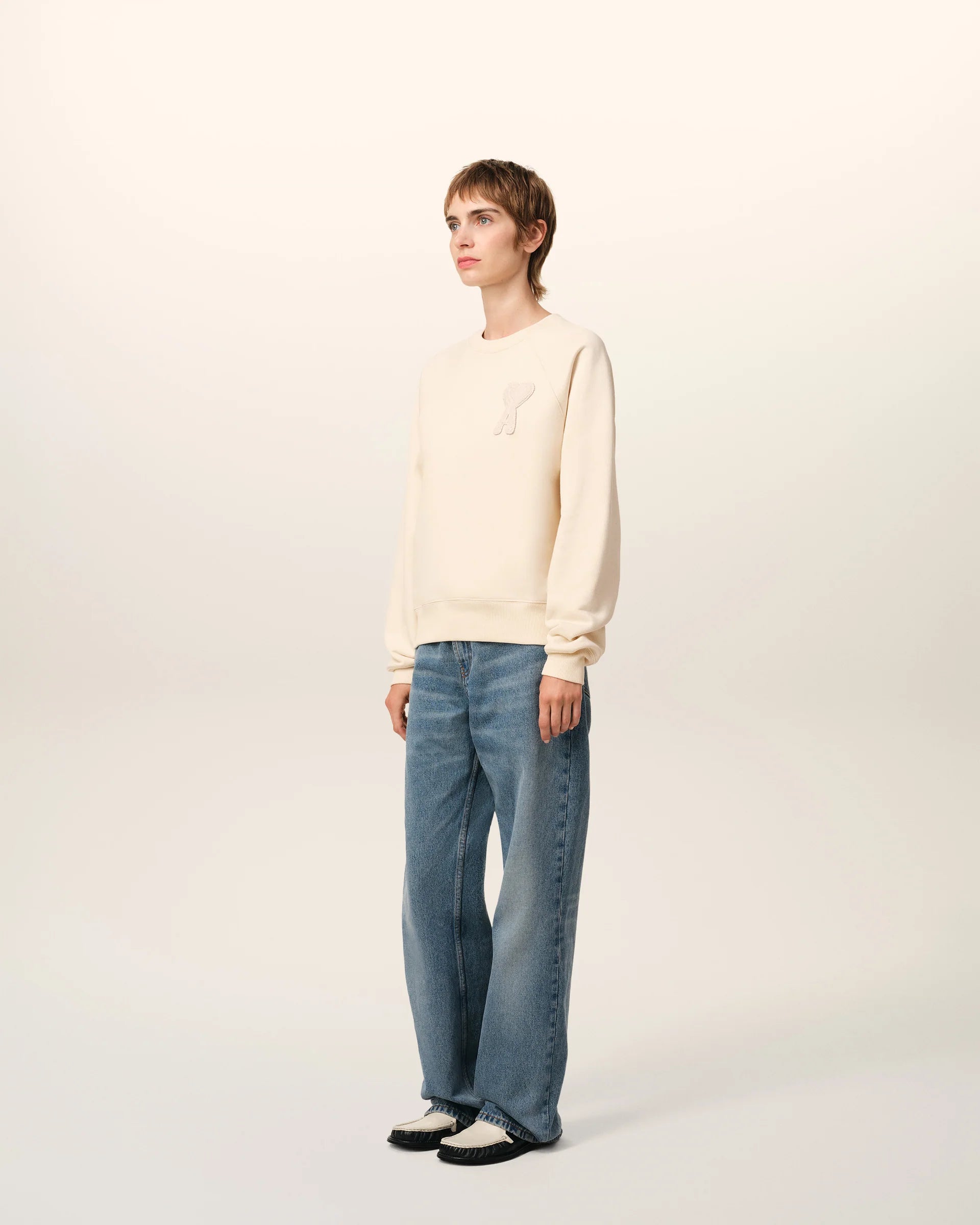 Ami Sweatshirt Beige Patch En Coton Blanc Crème