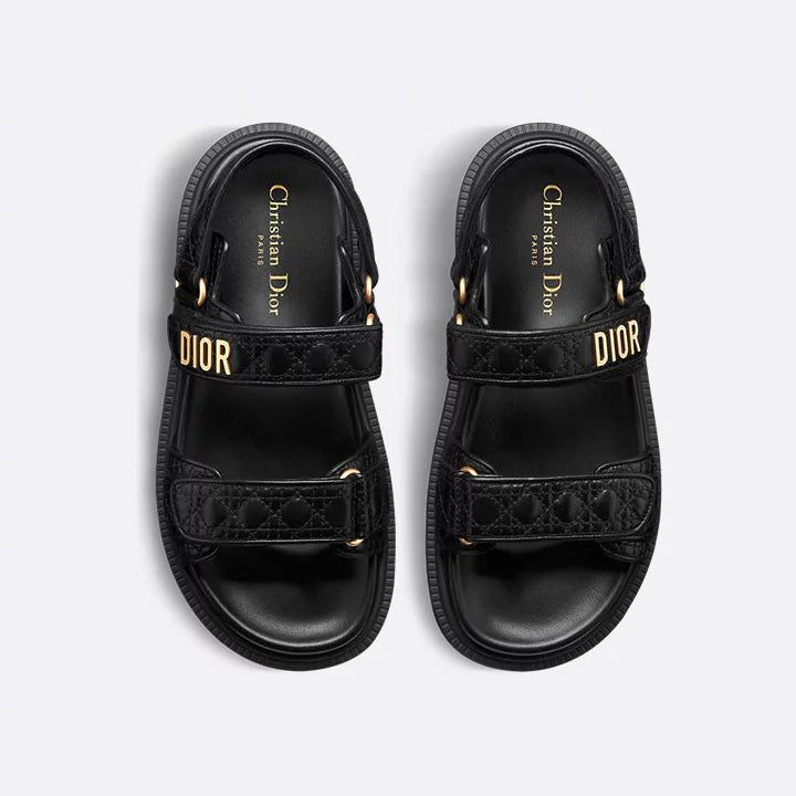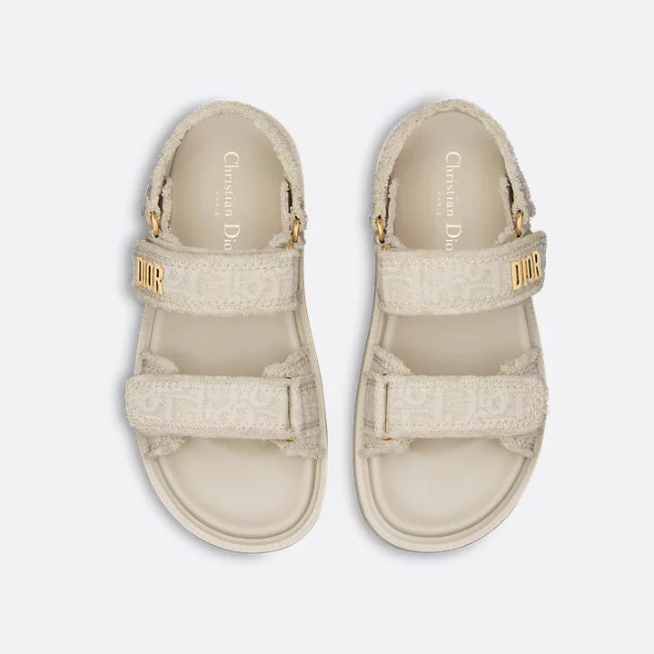Les sandales Dior à motifs, c’est pas juste pour marcher... c’est pour *défiler* dans ta propre vie. Avec leurs dessins qui font un peu “carnet de croquis d’artiste en vacances à Capri”, ces claquettes te font passer de “je vais chercher du pain” à “la fashion week commence dès la boulangerie”. On dirait presque qu’elles ont été dessinées à la main par un styliste en manque de dolce vita. En vrai, elles ont juste ce **petit air capricieux** qu’on adore. Et toi aussi, t’as le droit de faire ta star au feu rouge.