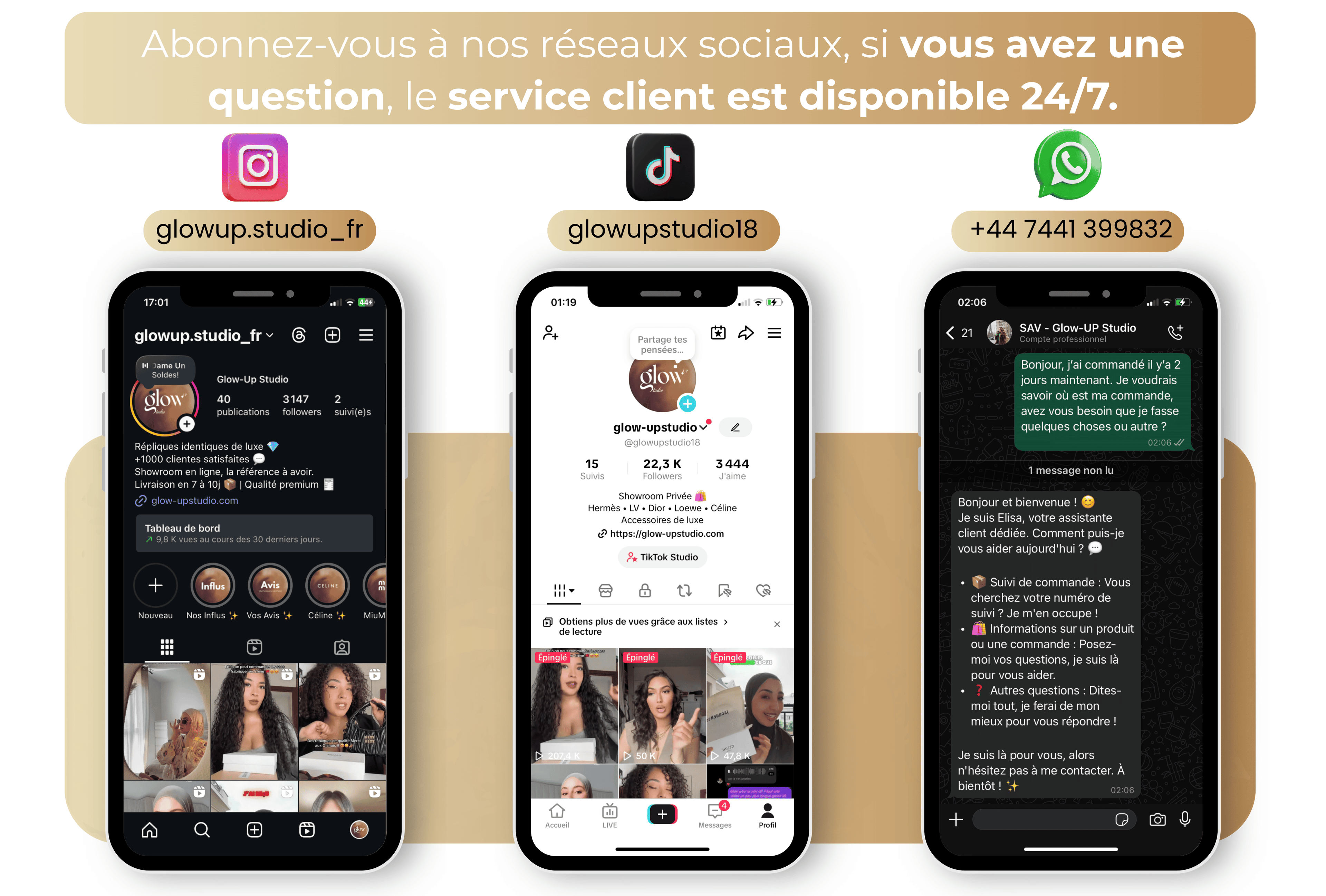 Besoin d’aide ? Notre service client est disponible 24h/24 et 7j/7 sur WhatsApp. Cliquez simplement sur l’icône en bas à droite de votre écran. On est là pour vous accompagner ✨